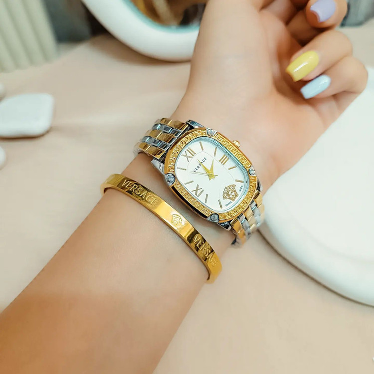 دیدن محصولات مرتبطبنگلای ورساچه استیل درجه یک هستن و تغییر رنگ ندارن ضدحساسیت هستن و کیفیت درجه یک دارن ،حک داخل کار نشون دهنده کیفیت بالای کار هست ساعت درجه یک موتور ژاپن قفل رولکسی سنگین