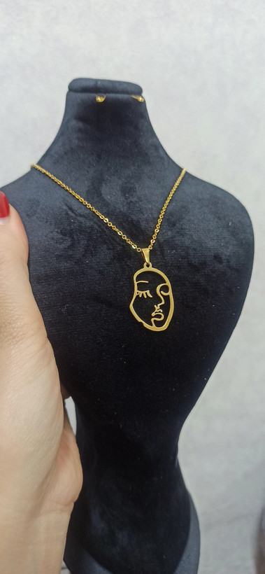 گردنبند استیل مینیمال صورت رنگ ثابت ضد حساسیت