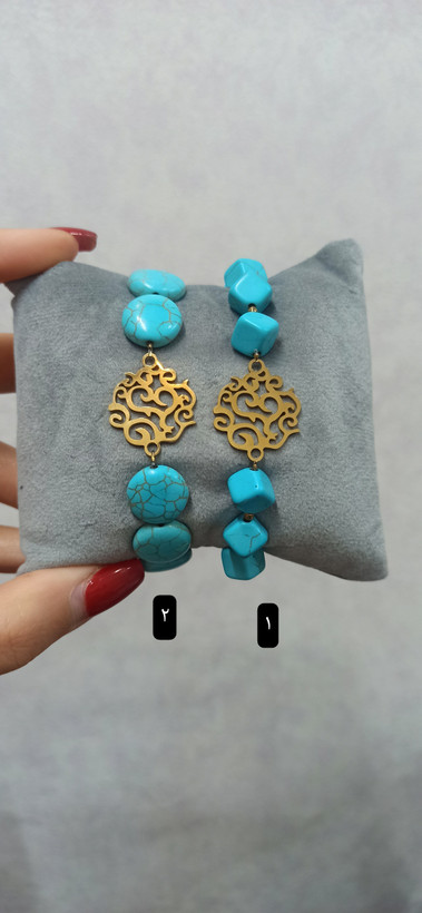 دستبند کشی طرح طلا پلاک استیل و سنگ فیروزه مصنوعی