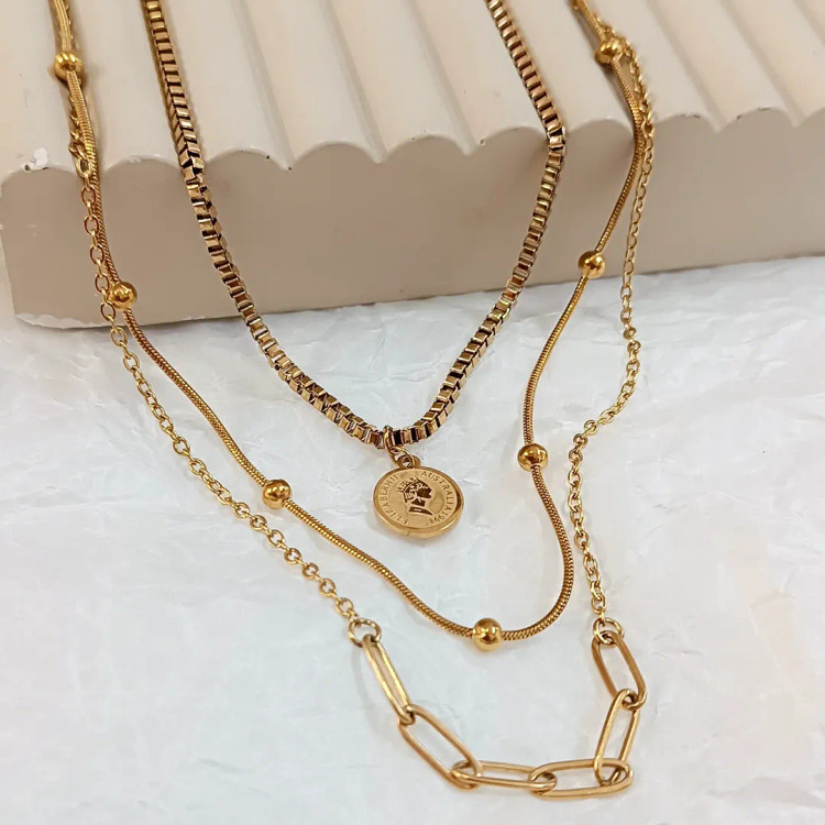 گردنبند سه لاین استیل سکه الیزابت