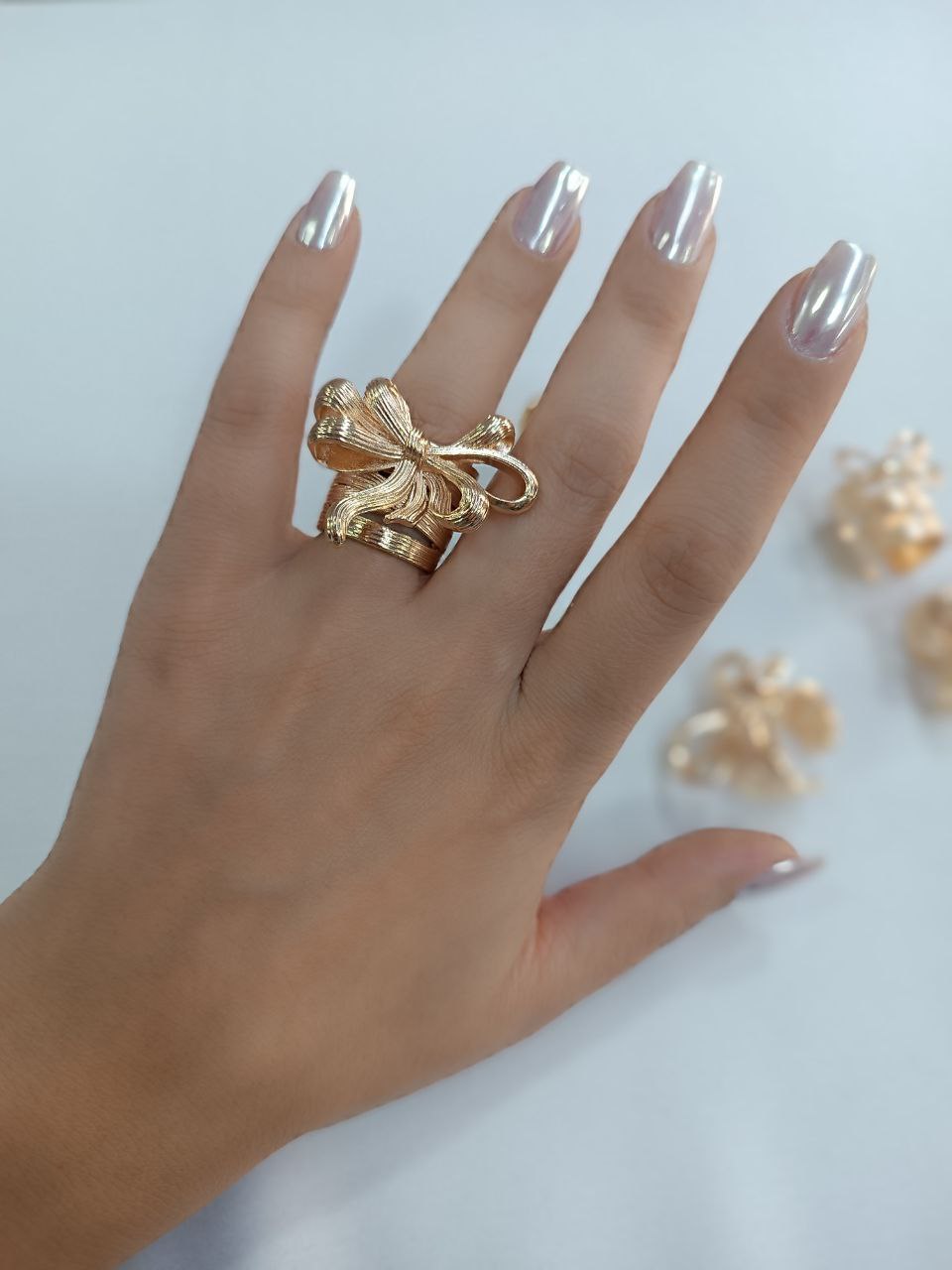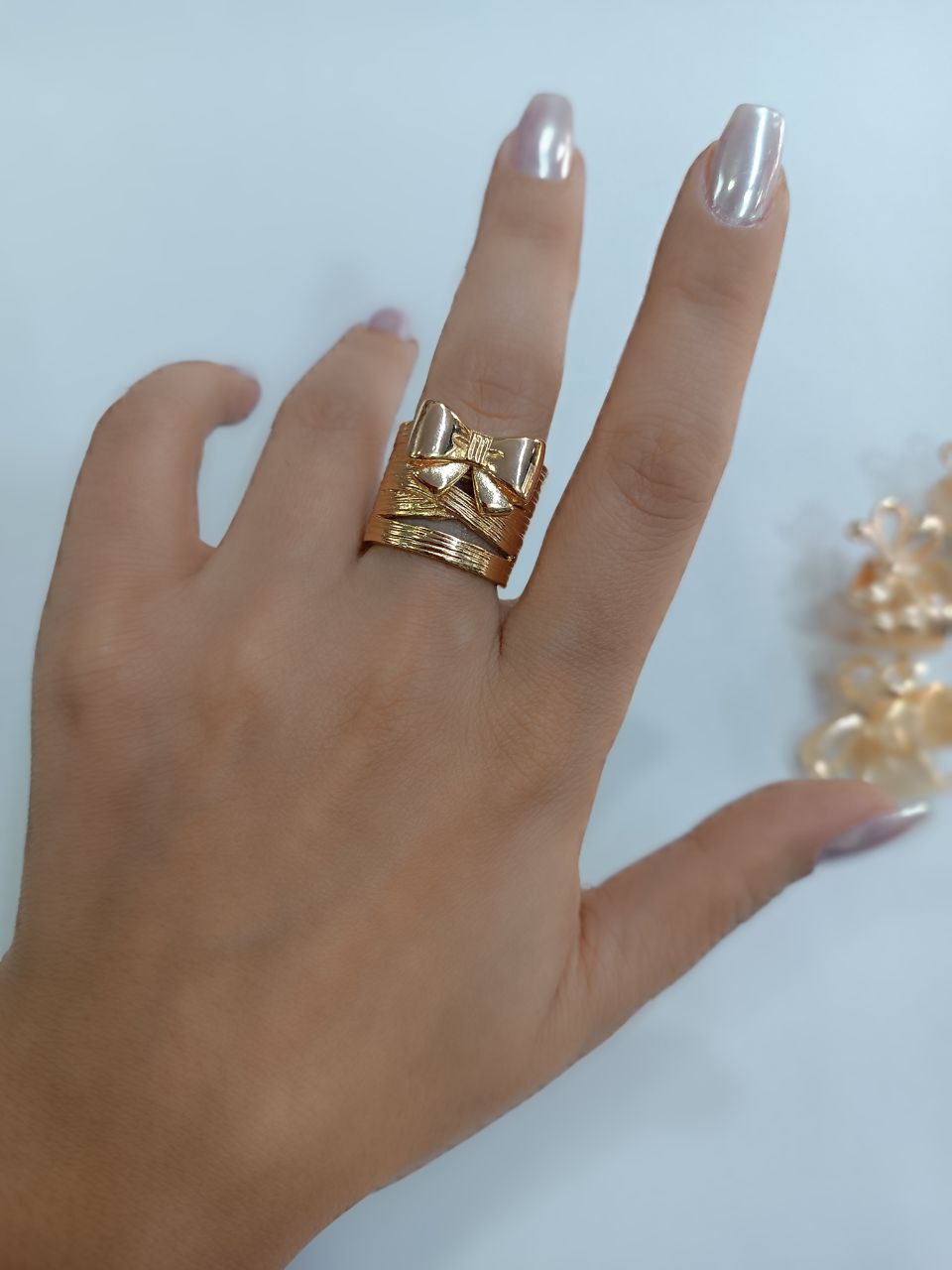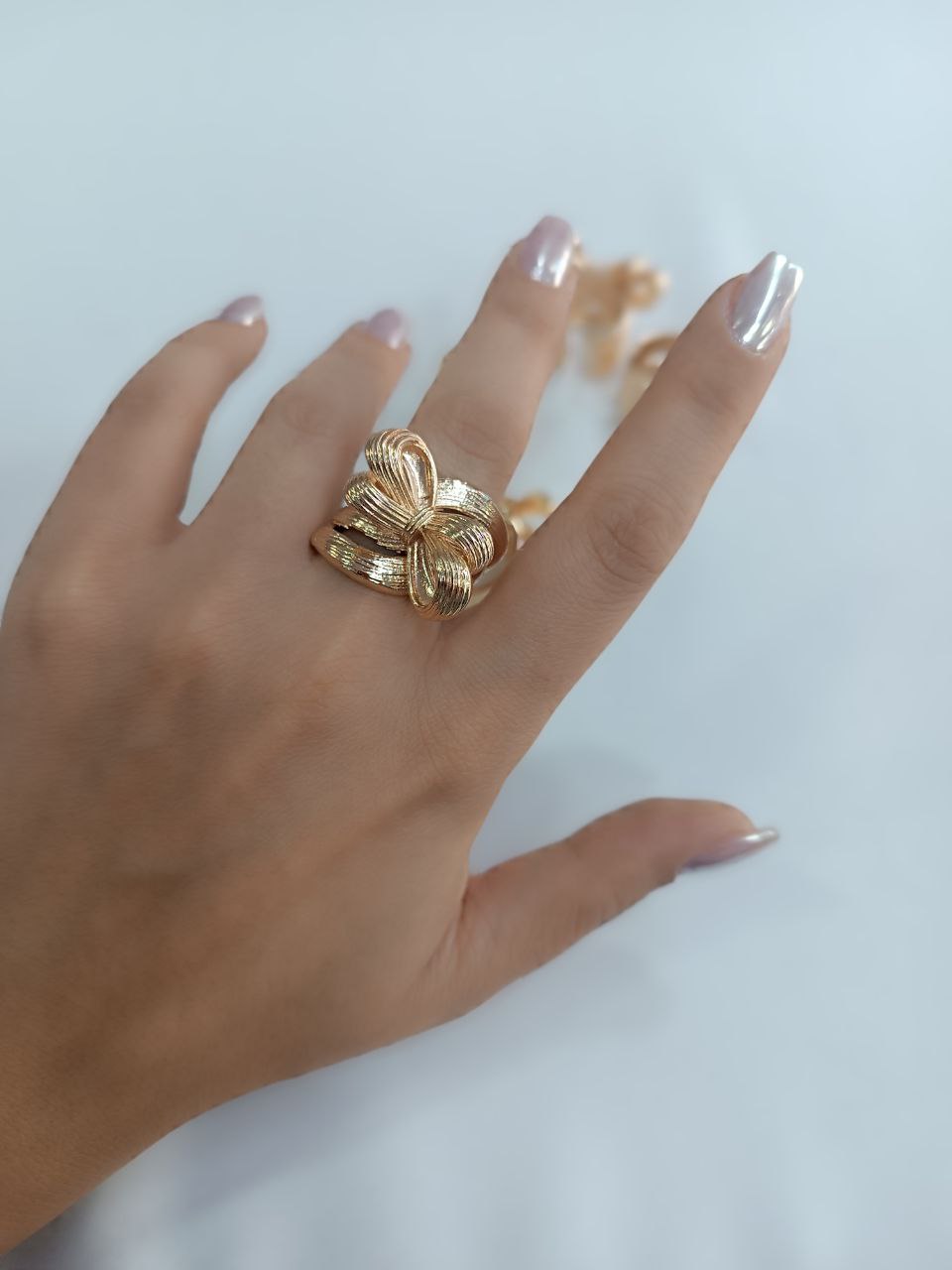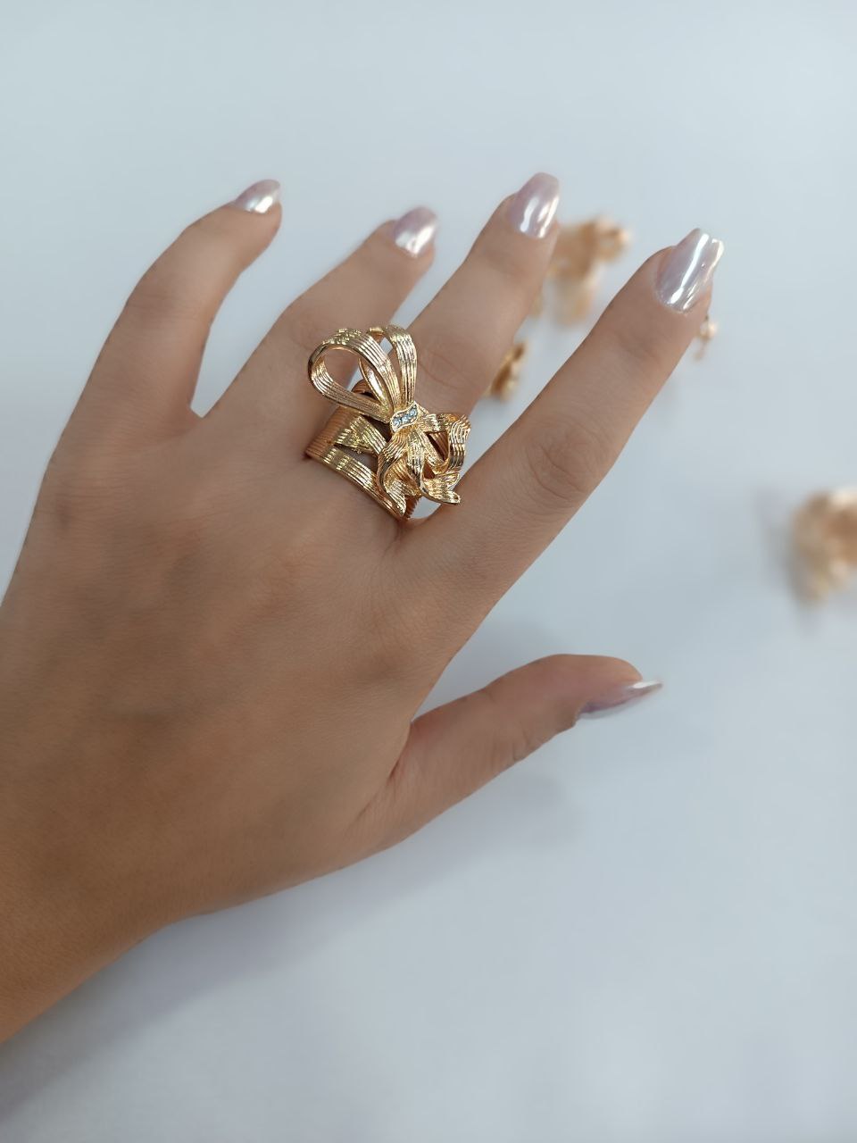 انگشتر پاپیون زنانه با طراحی ظریف و دخترانه، انتخابی عالی برای افرادی است که به زیورآلات خاص و شیک علاقه دارند. این انگشتر با آبکاری طلا ساخته شده و درخشندگی زیبایی دارد که جلوهای لوکس به استایل شما میبخشد.
